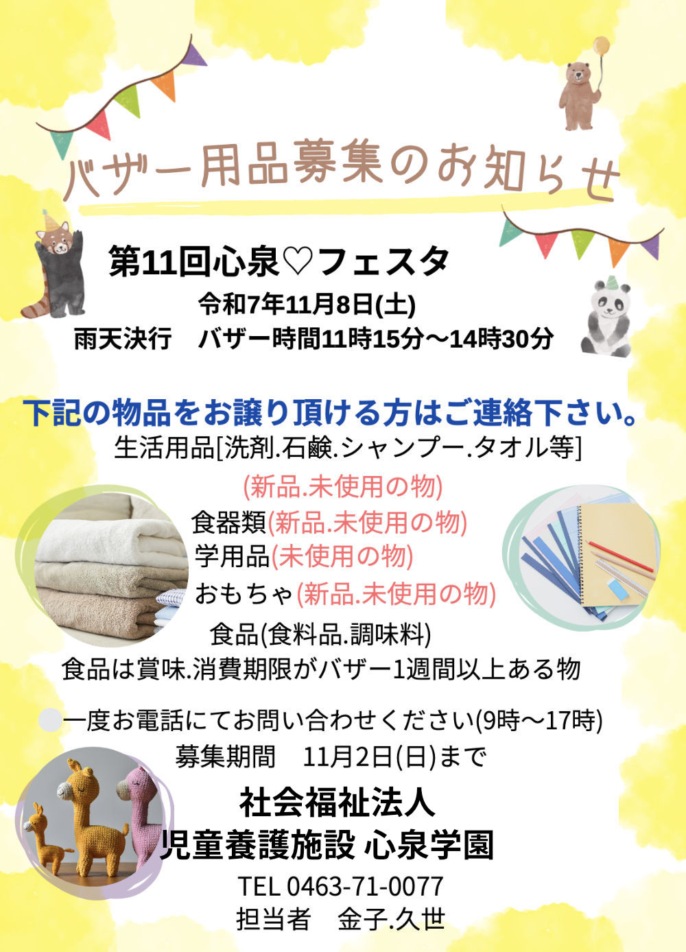 第11回心泉♡フェスタ バザー用品募集のお知らせ