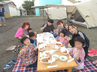前日が雨で心配していましたが、皆の願いが叶い、とてもよいお天気になりました。ひこうきユニットの小学生男子4名はテント張りから!