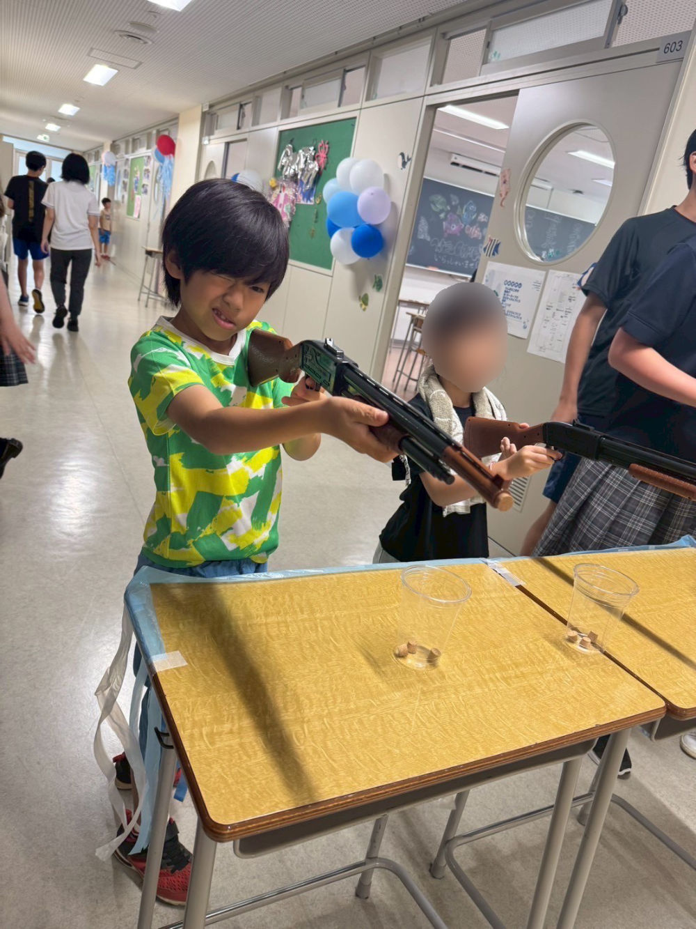 昼食後は、今年は「縁日」をテーマに企画してくれた射的やボーリング、石鹸やスライムづくり等手作りで楽しむコーナーもありました。作ったものはその日に持ち帰ることができてすごく喜んでいました。