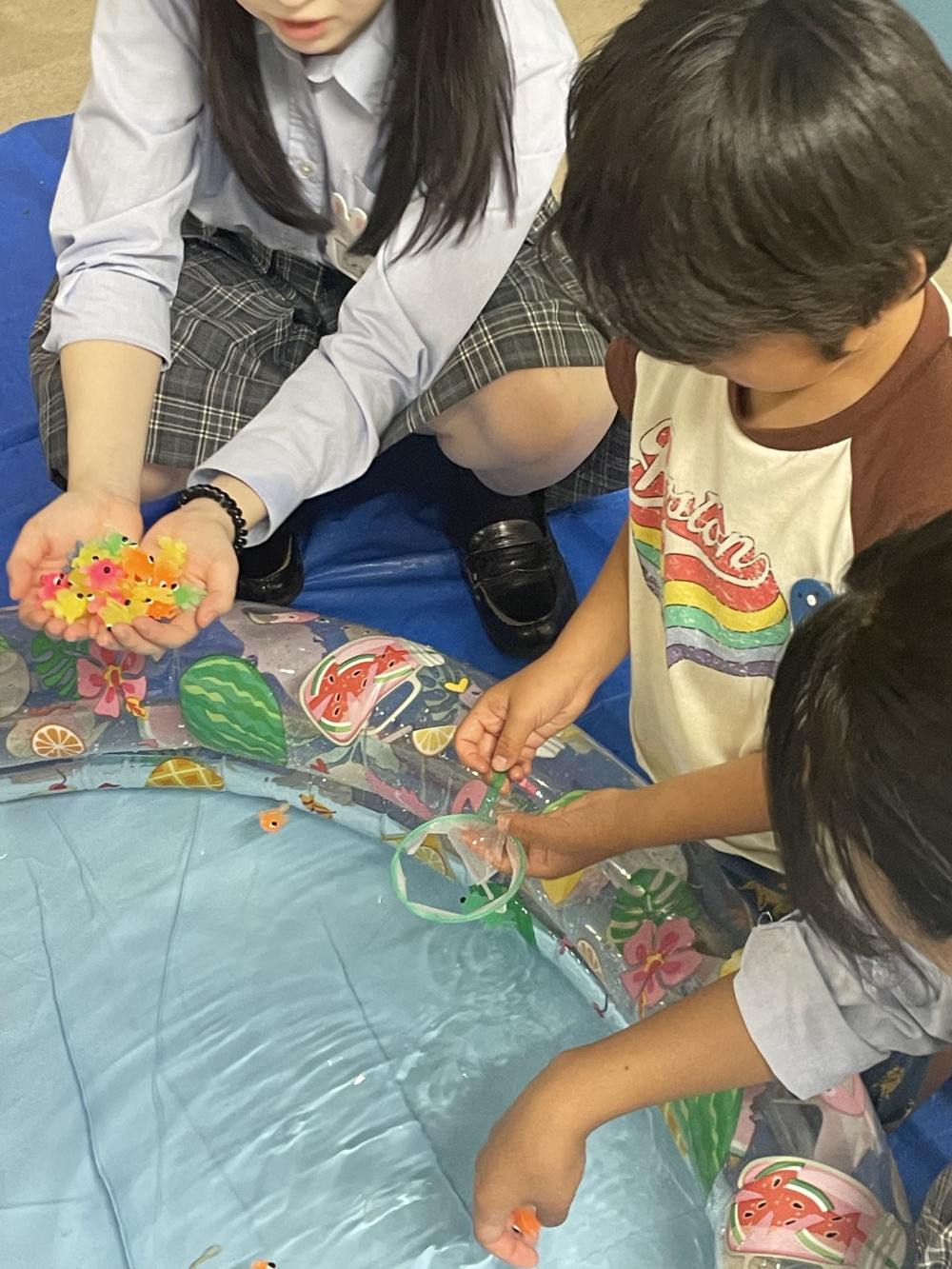 その後もなぞ解きやじゃんけん列車を生徒のお姉さん方と楽しみ、大満足な一日を過ごすことが出来ました。一日交流が出来たことで、子どもたちも徐々に緊張が解けていき、楽しそうな姿をたくさん見ることが出来ました。神田女学園の皆様、貴重な時間をありがとうございました。