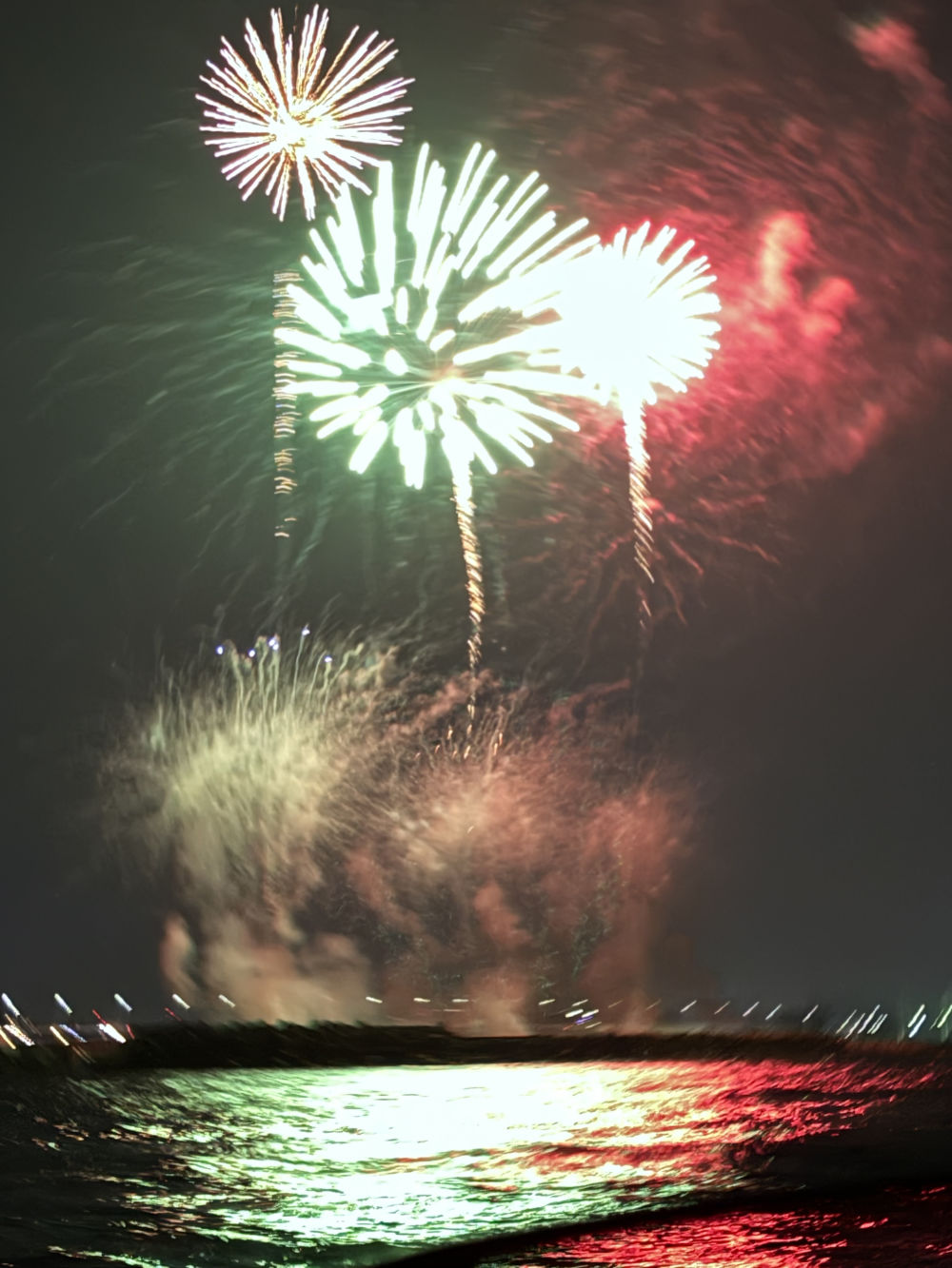 男子小学生で、湘南平塚花火大会を観に行きました。今年はご縁があって、漁船に乗せて頂き海の上から花火を観ることができました。