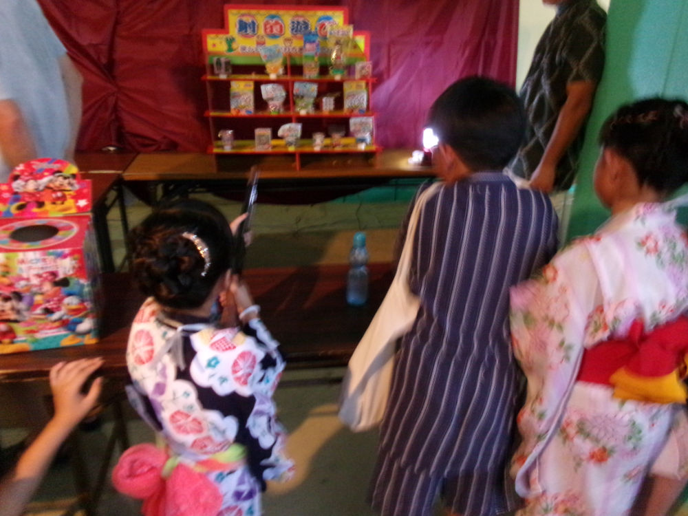 くれる卒園生、夕方には着付けボランティアの皆さんが来園され、高校生ボランティアや子ども会、町内会の皆様も到着し準備が整うと、いよいよ学園の幼児、低学年の子どもたちによる元気いっぱいのダンスで幕開けです。