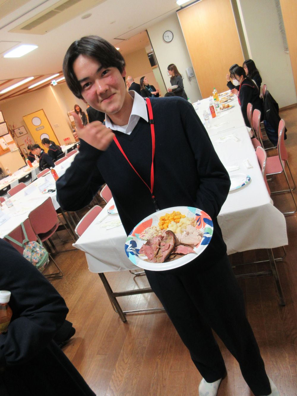 今年もネイビーさん、マリーンさんが、母国アメリカでの伝統行事である「感謝祭」にあたり、サンクスギビング ディナーを学園の会議室にて開催してくださいました。
