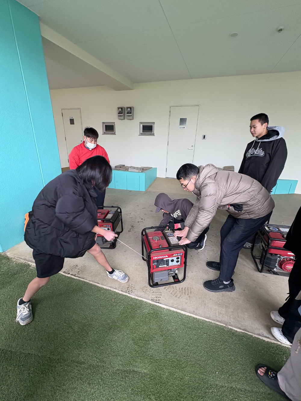 昼食の炊き出し訓練では、中学生中心に積極的に参加し、準備や配布を手伝ってくれました。発電機の扱いや、「まかないくん」の設置に苦労しながら、非常食も「おいしい」と言いながら食べ、防災について語り合いつつ学ぶ、良い機会となりました。