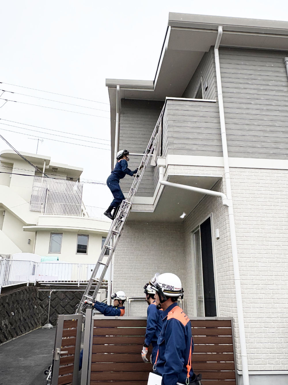 二宮町消防本部の方々と一緒に、避難訓練・消防訓練を行いました。